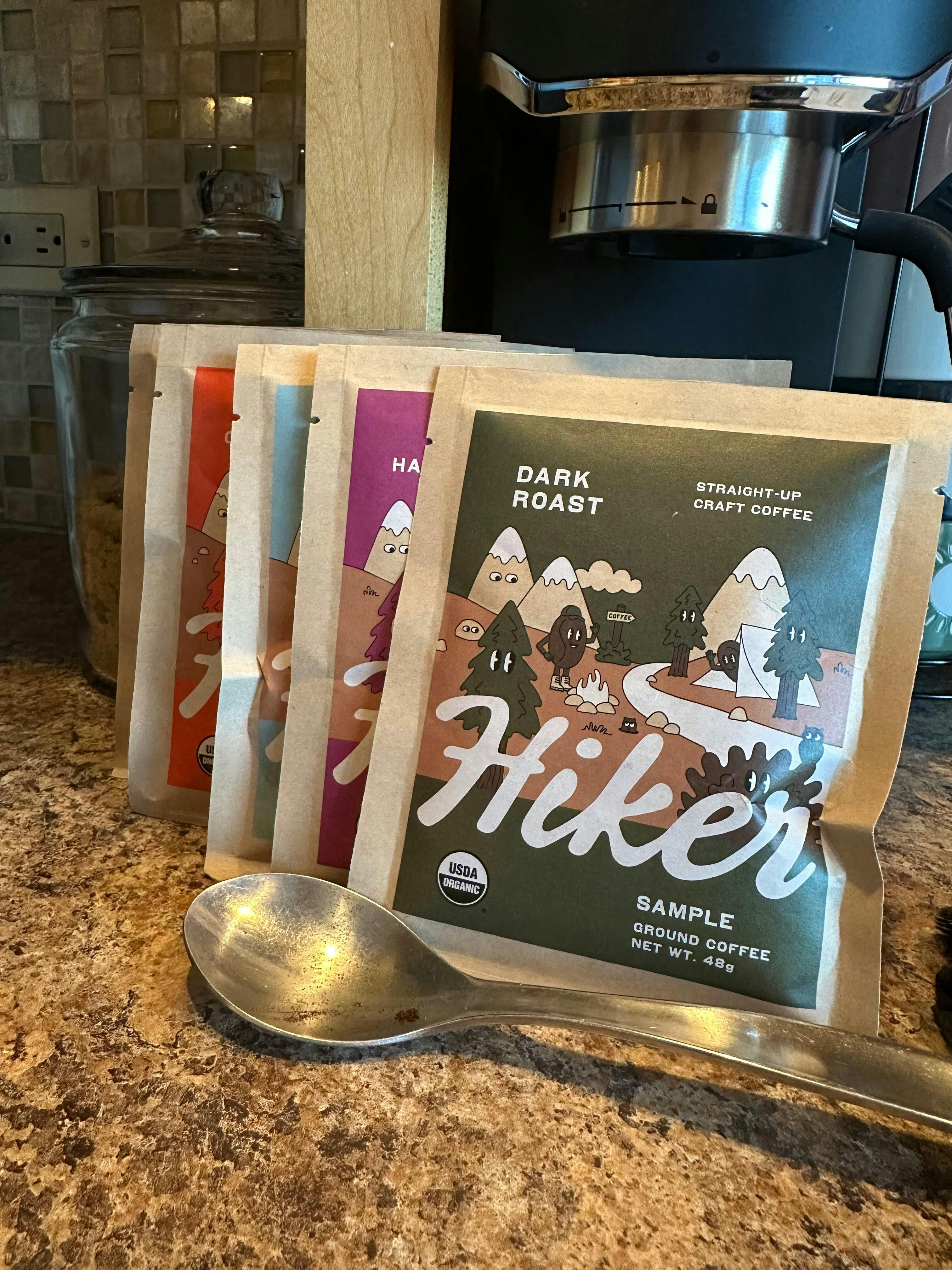 New to Hiker, or love us already and want to take all our coffees on your next adventure? Here you go—one pouch of everything prepped and ready to roll. Go for it! Each pouch makes 2-4 cups (12-24 total). PS: These are loose grounds, so bring your fav travel brewer if you’re loading your car or pack.