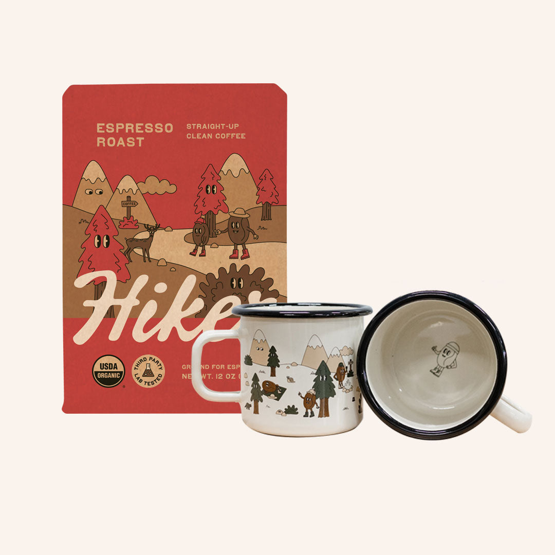 Clean coffee deserves a worthy cup. This bundle brings together a 12oz bag of our small-batch roasted coffee and our enamel camp mug, designed for kitchens, campsites, and everywhere in between.